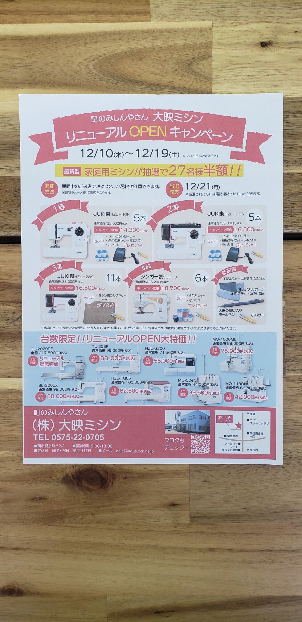 抽選ミシン以外にも台数限定、リニューアルオープン大特価で、